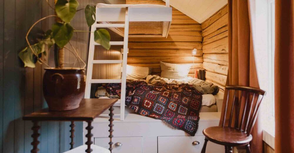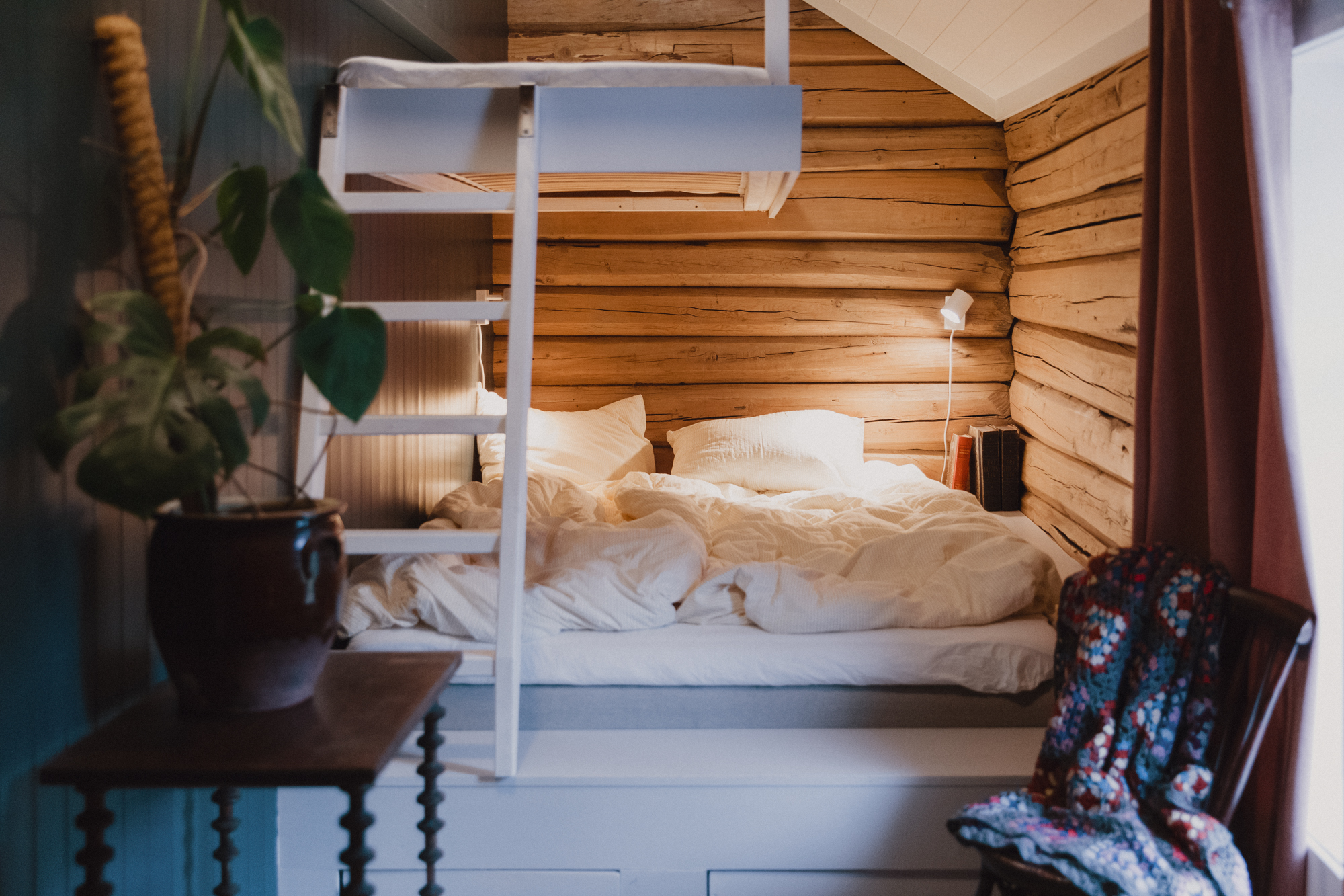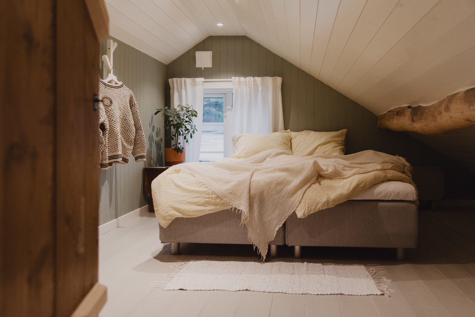 Køyeseng 15 m² Delt bad 1-3 gjester Fra kr 1650 Langeloftet Køyeseng og tømmervegger Rommet ligger i 2.etg og har køyeseng. 160×210 seng under og 90×210 seng over. Det er vinduer med utsyn til kjøkkenhagen. I gangen er det bad […]